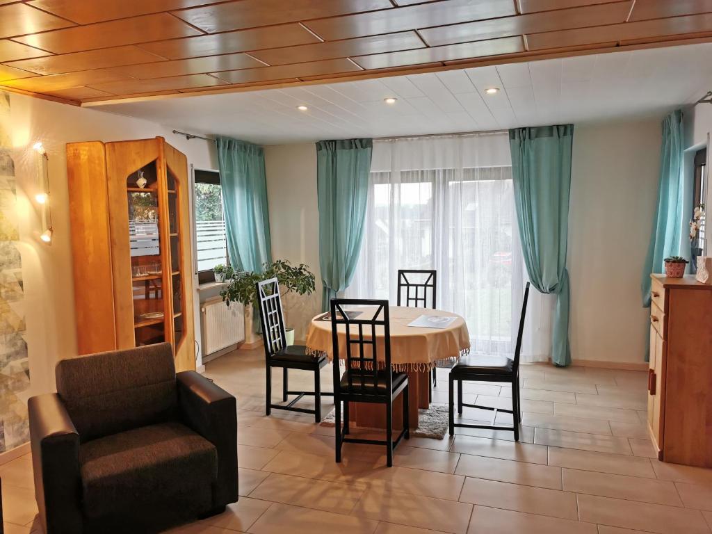 Die Wohnung befindet sich im Erdgeschoß des Hauses. Einen Teil des Gartens teilen Sie mit den Gästen des "Ferienhauses Sonnenschein" aber Sie haben ihre eigene Terrasse direkt neben der Terrassentür. Der Name der Wohnung lautet "Ferienwohnung Sonnenschein II" und das ist kein Zufall, denn sowohl morgens, wie auch mittags können Sie hier viel Sonne erwarten. Sollte es zu warm werden, dann können Sie immer den Schatten des großen Baums oder Sonnenschirms suchen. Bei einem Aufenthalt in den kälteren Jahreszeiten können Sie es sich innen sehr gemütlich machen. Die Wohnung wurde komplett neu renoviert und wartet mit einer überaus kompfortablen Austtatung sowie einer komplett ausgestatten Küche auf ihren Besuch. Vor allem für Paare eignet sich dieser Ort ideal.