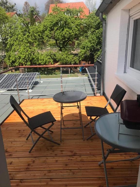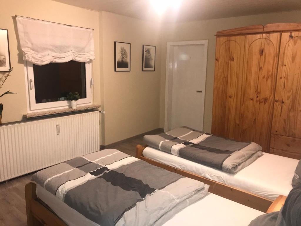 3 Doppelzimmer mit jeweils 2 Einzelbetten, ein Doppelzimmer ist ein Durchgangszimmer 3 Double Room each with 2 Beds one is a connectingroom Küchenzeile mit Vollausstattung Kitchen with utensils Wohnzimmer mit TV Living room with TV WLAN Terrasse derzeit noch im Bau aber zum Rauchen nutzbar Badezimmer mit Dusche Bathroom with shower bei kompletter Belegung von 6 Personen kann noch ein weiteres Gäste WC mit Toilette und Waschbecken genutzt werden With 6 persons you can use an second guest wc with toilette and sink 100 qm große Obergeschoss Wohnung mit moderner Einrichtung in gemütlicher Athmosphäre. Unser Haus liegt im Ortsteil Eimbeckhausen in direkter Nähe des schönen Deisters etwa 100 m vom Haus entfernt. Ideal für Wanderer, Mountain Biker oder Naturfreunde. Gute Anbindung nach Bad Münder per Bus. Mit dem Auto sehr zentral gelegen Fahrzeit nach Bad Münder ca. 5 min Autobahn A2 Lauenau in ca. 5 min zu erreichen