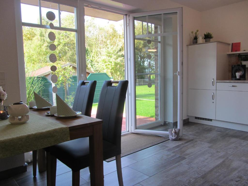 Lage: zentrumsnahe Wohnlage im Vormann-Stuhr-Weg 4 in Dornumersiel Wohnfläche: ca. 60 m² Maximale Personenzahl: 4 Personen Zimmer EG: kombiniertes Wohn-Esszimmer mit Küche, 2 Schlafzimmer (Boxspringbett elektrisch, 2 Einzelbetten 1,90 x 0,80m) (Bettrausfallschutz), Dusche/WC Ausstattung: Einbauküche, Geschirrspülmaschine, Kühlschrank mit Gefrierfach, Mikrowelle, Backofen, Sat-TV (Flatscreen), Stereoanlage, Hochstuhl, kein Kinderbett (nicht stellbar in den Schlafräumen), Waschmaschine, Rollläden (im Wohnzimmer elektrisch), Fußbodenheizung, Terrasse, Garten, Gartenmöbel, Sonnenschirm, PKW-Stellplatz, Abstellraum für Fahrräder, Besonderheiten: WLAN (Gigacube), Nichtraucher, Haustiere nicht erlaubt, Senioren- und Allergikerfreundlich, Insektenschutzgitter, Elektrostandgrill Bettwäsche (10 Euro pro Person) und Handtücher (5 Euro pro Person) können bis eine Woche vor Anreise hinzugebucht werden (sofern nicht bereits bei Buchung erfolgt).