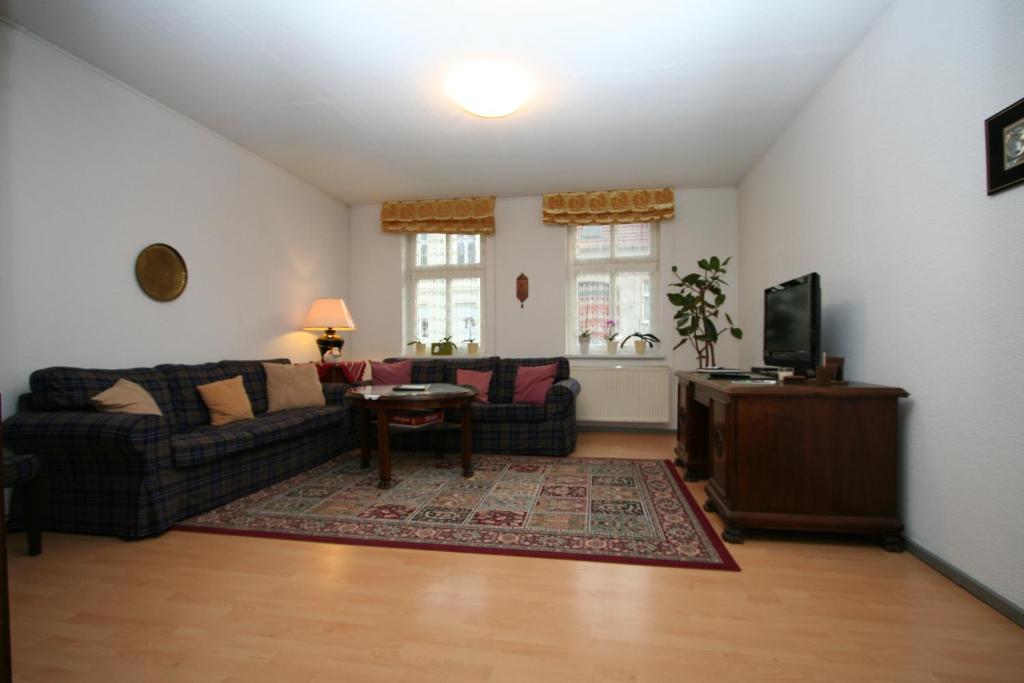 Vorteile: große, toll ausgestattete Ferienwohnung mitten im historischen Zentrum Moderne Küche mit absolut allem, was man für vollständige und auch längerfristige Selbstversorgung braucht. (Geschirrspüler, Mikrowelle, Wasserkocher, Kaffeemaschine, Toaster, Herd, großer Kühlschrank+Gefrierabteil, viel Geschirr und Besteck, sogar ein Wasserfilter unter der Spüle mit separatem Wasserhahn) toller Garten mit Sitzgelegenheiten und der Möglichkeit zum Grillen. modernes und schickes Bad in dem Haus sind in EG zwei Ferienwohnungen untergebracht, das OG scheint hingegen "normal" bewohnt zu sein. Unsere Ferienwohnung hatte das Wohnzimmer zur Straße und die Schlafzimmer zum ruhigen Innenhof.