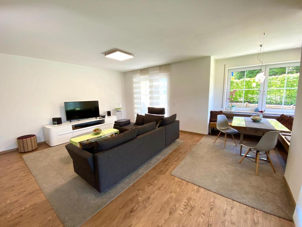 Genießen Sie Ihren Urlaub in unserer in 2016 fertiggestellten Ferienwohung in Schönau (Ortsteil Oberschönau). Die Wohnung befindet sich im Erdgeschoss eines Mehrfamilienhauses. Ihr Auto stellen Sie in der Tiefgarage ab und erreichen die Wohnung – wenn Sie möchten – mit dem Aufzug. Ihre mitgebrachten Fahrräder finden auch in der Tiefgarage Platz. In nächster Nähe (ca. 5 Gehminuten) befinden sich eine Bäckerei und eine Metzgerei. Auch die Tourist-Information können Sie zu Fuß erreichen. Ihre Wohnung verfügt über 2 Schlafzimmer. Eines davon mit Zugang zur Terrasse, im anderen befindet sich dafür der Zweitfernseher. In der zum Wohnbereich hin offenen Küche können Sie sich selbst versorgen; die Küche ist mit Backofen, Cerankochfeld und natürlich Geschirrspülmaschine ausgestattet. Toaster und Kaffeemaschine sind selbstverständlich auch vorhanden. Essen können Sie dann in der gemütlichen Essecke im Wohnbereich oder auf einer der beiden Terrassen. Im Wohnbereich können Sie auf der gemütlichen Polstergarnitur fernsehen oder einfach nur relaxen. Das Bad verfügt neben WC/Urinal über eine große Dusche und Badewanne. Zusätzlich verfügt ihr Feriendomizil über ein separates Gäste-WC.