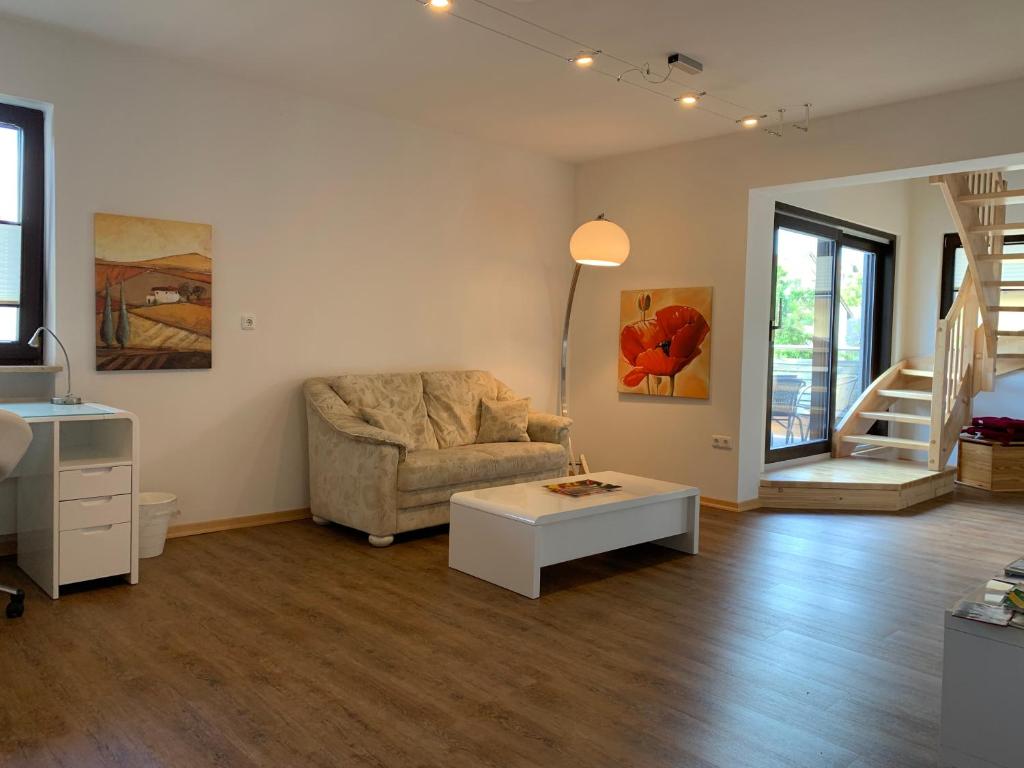 Zwei moderne Ferienwohnungen, die im Jahr 2015 komplett renoviert bzw. neu gebaut wurden, stehen Ihnen im malerischen Weinort Eibelstadt zur Verfügung. Eine Maisonette-Ferienwohnung (75m²) mit einer offenen Schlaf-Galerie und eine lichtdurchflutete Wohnung im Dachgeschoss (42m²) mit großem Panorama-Fenster. Eibelstadt ist neben der eigenen sehenswerten historischen Innenstadt auch als Ausgangspunkt für Ausflüge in die Kulturstadt Würzburg ideal. In nur 15 Minuten sind Sie mit dem Auto, oder in 20 Minuten mit dem öffentlichen Bus, in der Würzburger Innenstadt angelangt. Würzburg ist weltweit bekannt durch die Festung Marienberg, einer der größten erhaltenen Burganlagen, sowie durch das UNESCO Weltkulturerbe Residenz in der Würzburger Innenstadt. Eine Ortschaft weiter, in Sommerhausen, gibt es viele sehenswerte Galerien, Weingüter und Künstler zu entdecken. Bekannt ist Sommerhausen auch für seinen besonders schönen Weihnachtsmarkt in den Hinterhöfen und Gassen des idyllischen Städtchens.