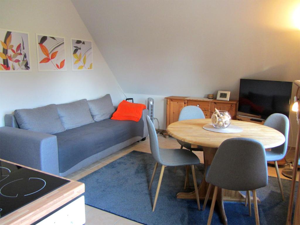 Die beiden Ferienwohnungen befinden sich im OG eines Ferienhauses auf einem etwa 1000 qm großem Grundstück innerhalb einer ruhigen Wohnsiedlung. Fewo 1 ist ausgestattet mit einem Wohnraum mit Schlafcouch, Essecke, TV und Radio, einer offenen Küche mit E-Herd, Kühlschrank, div. Küchengeräte, einem Schlafraum mit Doppelbett sowie mit einem Badezimmer mit DU/WC. Hier ist ein kleiner Hund erlaubt. Die Fewo 2 ist ausgestattet mit einem kombinierten Wohn-/ Schlafraum (Doppelbett, Schlafcouch, TV und Radio), einer Küche (E-Herd, Kühlschrank, div. Küchenkleingeräte, Essecke) sowie mit einem Badezimmer DU/WC. Die Räume sind über einen Gemeinschaftsflur zu erreichen. Außerdem zur Verfügung stehen: zwei Sitzecken im Freien, Grill, WLAN-Anschluss 1,00 Euro/Tag, Fahrradunterstellmöglichkeit und Parkplatz. Im Gesamtpreis enthalten sind Bettwäsche, Handtücher, Wasser, Energie und Endreinigung. Vor Ort zu zahlen: Kurtaxe. Haustiere: In diesem Objekt ist ausschließlich in der Wohnung 1 die Mitreise eines kleinen Hundes bis zu einer Risthöhe von 40 cm erlaubt (5 EUR/Ü).