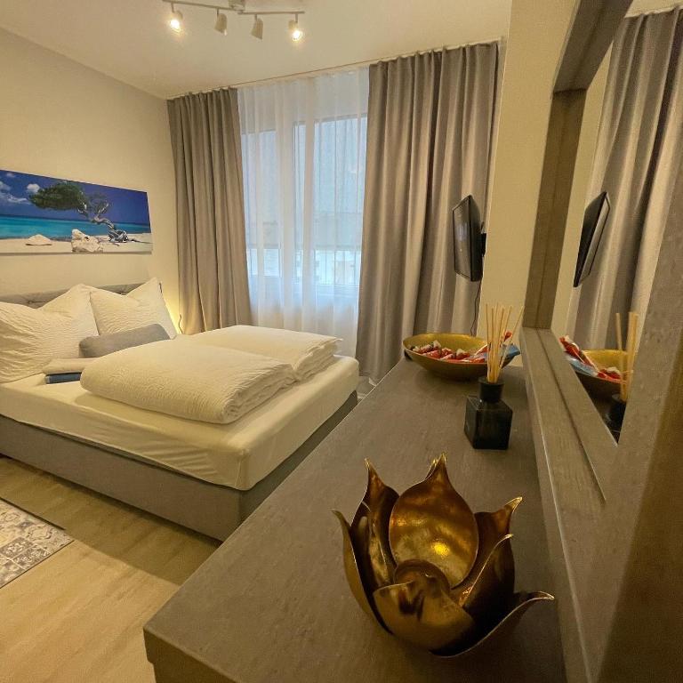 Die FeWo & Apartments by Edina Stein in Mainz in Rheinland-Pfalz liegen in der Nähe des Hauptbahnhofs Mainz und bieten Unterkünfte mit kostenfreiem WLAN und kostenfreien Privatparkplätzen.