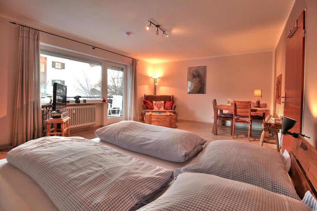 Willkommen in der Sandra-Wohnung! Die ruhige Wohnung befindet sich in einem gepflegten Mehrfamilienhaus. Das Zentrum von Partenkirchen, die Skistation, das Kainzenbad, die Eckbauerbahn und diverse Spazierwege sind nur wenige Gehminuten entfernt. Im Winter sind die präparierten Loipen zu Fuß erreichbar. Eine Bushaltestelle befindet sich in unmittelbarer Nähe. Nach einem kurzen Eingangsbereich mit kleiner Garderobe gelangt man in das große Wohn- und Esszimmer. Die Küche verfügt über alle technischen Geräte, die Sie erwarten können. Hier finden Sie ein Wohnzimmer mit Essecke, Couch und Doppelbett, eine kleine Küche und ein Badezimmer mit Dusche und WC. Darüber hinaus verfügt diese Wohnung, die für 2 Personen und 1 Baby ausgestattet ist, über einen sonnigen Westbalkon mit freiem Blick auf das Alpenpanorama. Im Untergeschoss befindet sich eine Münzwaschmaschine und -trockner sowie ein Gemeinschaftsraum zum Abstellen von Fahrrädern oder Skiern. Es handelt sich um eine Nichtraucherwohnung. Haustiere sind hier herzlich willkommen! WLAN ist kostenlos! Babybett und Hochstuhl nach Absprache buchbar!