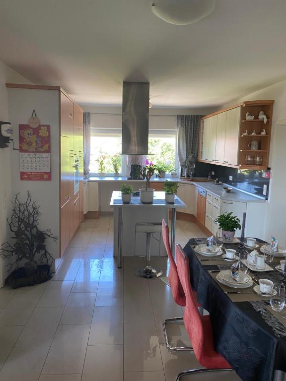 Ruhige Lage mit Blick in die Natur. Die Wohnung ist sehr gut ausgestattet. Das große Badezimmer verfügt über eine ebenerdige Dusche, Whirlpool, großes Doppelwaschbecken, WC und Bidet. Die Wohnung hat insgesamt 149 qm - zwei Schlafzimmer und ein großes Wohnzimmer, offene Küche mit Esstisch für 6 Personen. Am Rande der Stadt Pocking im schönen Niederbayern. Nach Bad Füssing sind es 4 km - nach Österreich 7 km. Der berühmte Haslinger - Hof in Kirchham ist 6 km entfernt. Fahrradverleih auf Anfrage möglich.