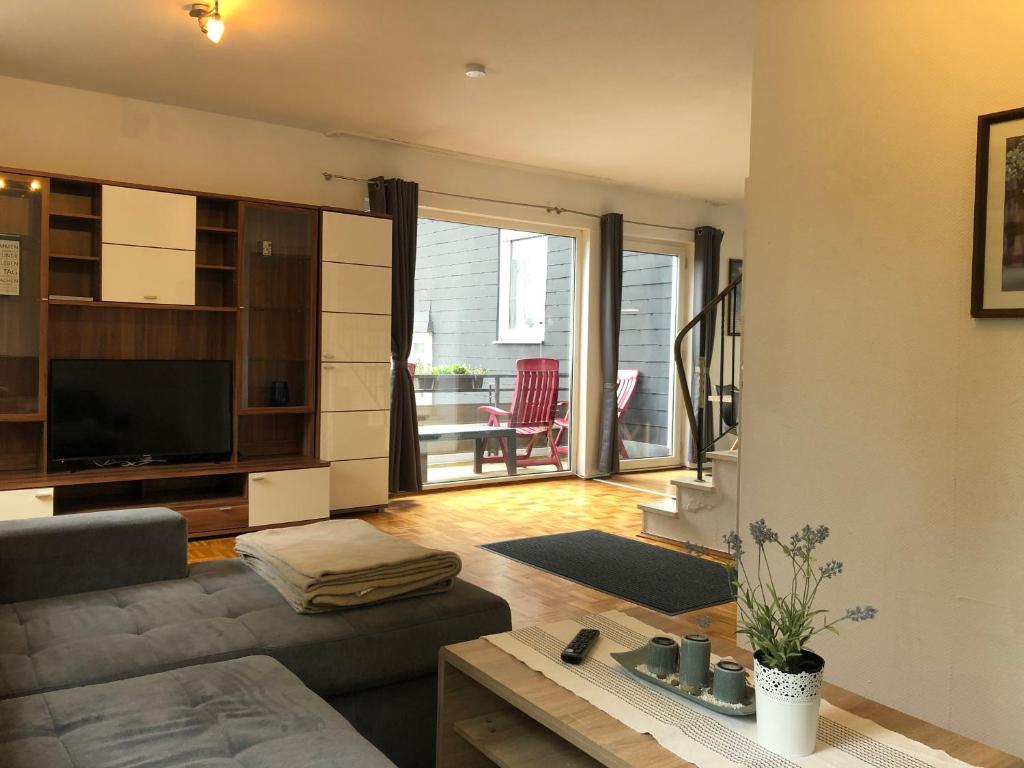 Zentrale Ferienwohnung im Ferienort Usseln für bis zu 8 Personen mit 3 Zimmern, Küche, 2 Bädern und 2 Balkonen mit Ausblick in Garten und in den Ort. Das lichtdurchflutete Reihenhaus wurde renoviert und mit neuen Boxspring-Betten und neuen Möbeln ausgestattet.