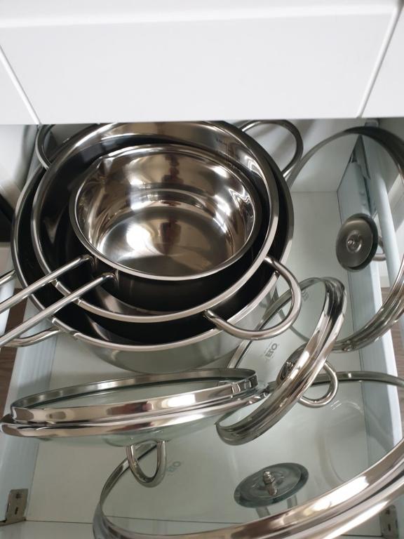 Jede Wohneinheit verfügt über eine voll ausgestattete Küche mit einem Geschirrspüler, einen Sitzbereich, einen Flachbild-TV, eine Waschmaschine und ein eigenes Bad mit einer Dusche und einem Haartrockner. Eine Mikrowelle, ein Kühlschrank, ein Backofen, ein Wasserkocher und eine Kaffeemaschine sind ebenfalls vorhanden.