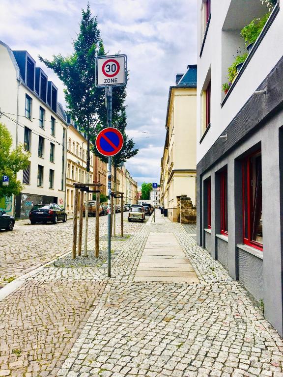 Äußere Neustadt: Das angesagteste Gebiet Dresdens ist das Viertel der Studenten, jungen Berufstätigen und Künstler. Ein multikultureller Schmelztiegel, modern, lebhaft und ausgefallen. Mehr als 100 Bars, Pubs, Clubs und Musiklokale befinden sich zwischen dem Albertplatz und der Stauffenbergallee. Unnötig zu erwähnen, dass in den Straßen des Viertels Äußere Neustadt an einem Wochenende viel los ist, wenn Studenten und junge Berufstätige das Nachtleben genießen. Tagsüber genießen sie Chai Lattes und kalten Kaffee, essen vegane Buddha-Schalen oder spanische Tapas, kaufen in trendigen Modeboutiquen ein und besuchen häufig die kleinen Kunstgalerien. Es ist leicht, sich in der Neustadt zurechtzufinden, viele Leute benutzen Fahrräder oder öffentliche Verkehrsmittel. Die Straße ist eine Einbahnstraße, Parkgebühren fallen auf der Straße an. Straßenbahn Nr. 13 ist 5min. (400m) zu Fuß von der Wohnung entfernt. Bus Nr. 74 ist 8min. (600m) zu Fuß von der Wohnung entfernt. Bus Nr. 64 ist 10min. (800m) zu Fuß von der Wohnung entfernt. Straßenbahn Nr. 11 ist 10min. (900m) zu Fuß von der Wohnung