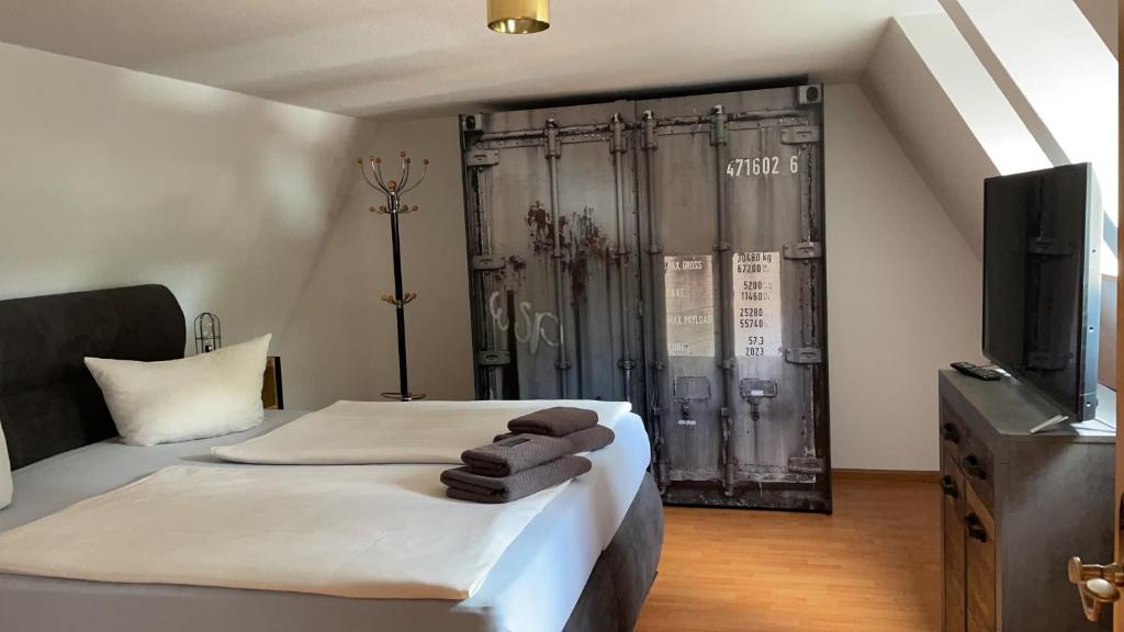 Jedes Zimmer im Gasthof verfügt über einen Kleiderschrank. Die Unterkünfte verfügen über einen Kühlschrank.