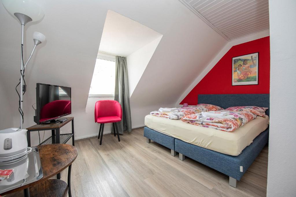 Gästehaus Mona Lisa heeft een prachtige ligging direct aan de rustige kant van de Moezel met dus uitzicht op de Moezel, de wijnbergen en de sluis. We hebben een mooi dakterras met een prachtige serre waar de gasten altijd kunnen genieten van het mooie uitzicht. Het is altijd open voor de gasten en in de aangrenzende keuken staat een koelkast met Moezelwijnen, bier en frisdranken, er is een senseo en een waterkoker aanwezig en de gasten kunnen zelf hun drankje pakken/maken, opschrijven op een briefje en bij vertrek afrekenen. Dit wordt zeer gewaardeerd door onze gasten, het gevoel van vertrouwn.Onze kamers zijn allemaal heel gezellig ingericht met eigen badkamer, TV en een zithoek. Ik regel regelmatig een wijnproeverij in een prachtige oude wijnkelder in Neef en ook kunnen de gasten mee met een huifkar die zo'n 3 uur door de omgeving rijdt (met een traktor). Dit is altijd alleen bij voldoende deelname, de gasten die al meegedaan hebben vonden het geweldig.We hebben ook Gästetickets voor de gasten en daarmee kun je bijna overal gratis met de trein en bus door Rheinland Pflaz (Trier niet) en krijg je korting bij diverse attracties.