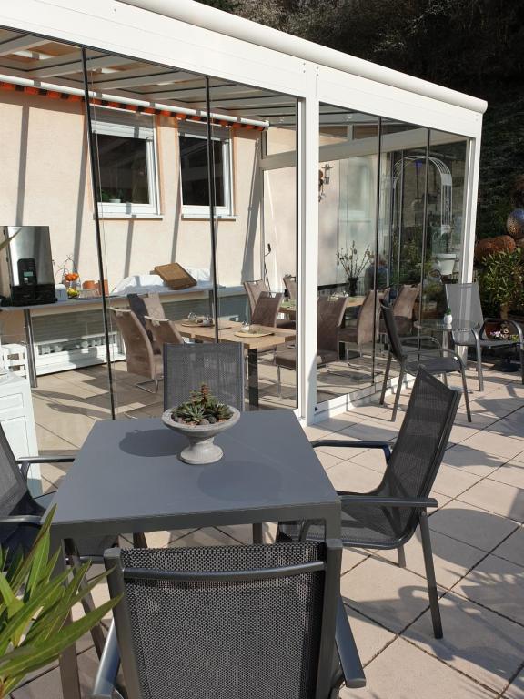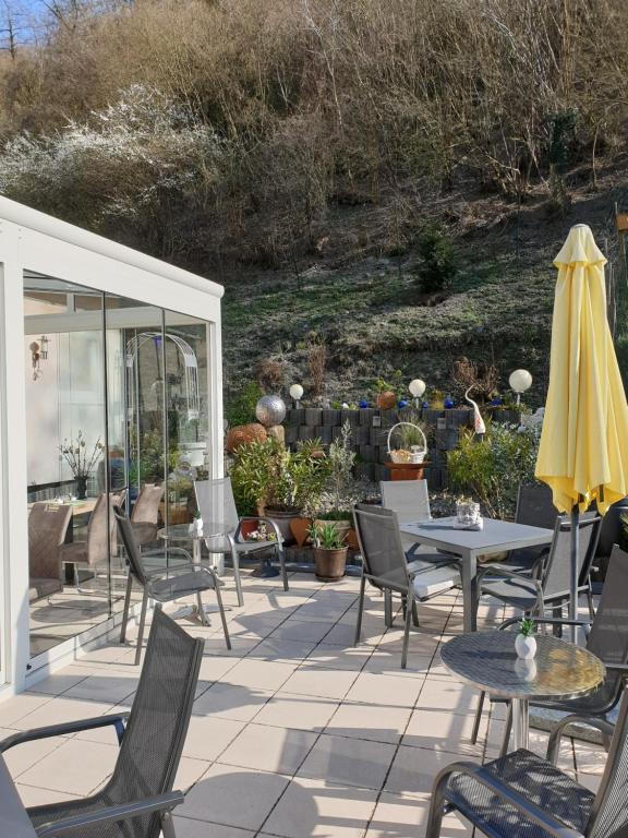 Das Ferienhaus Stahlbergblick in Bacharach bietet eine Terrasse. Dieses Ferienhaus verfügt über einen Garten, Grillmöglichkeiten, kostenfreies WLAN un