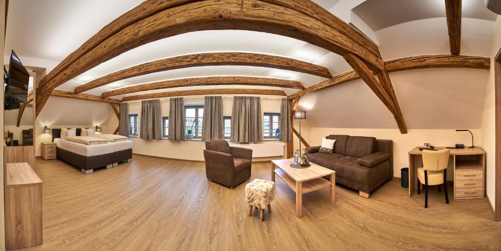 Leihen Sie sich hier auch Fahrräder, um die malerische bayerische Landschaft zu erkunden. Entspannung finden Sie auf der Terrasse, die exklusiv für Hotelgäste reserviert ist. Die Limes-Therme in Bad Gögging sind nur 1 km entfernt.