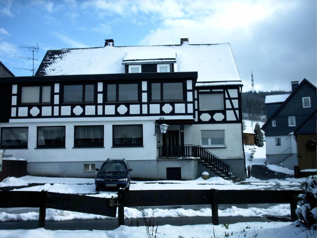 Diese traditionelle Pension erwartet Sie im Viertel Altenfeld in einer ruhigen Lage im Hochsauerland. Freuen Sie sich auf ein Frühstücksbuffet, ein Pub im Landhausstil und eine Sonnenterrasse. Die geräumigen Zimmer im Gasthof Haus Hubertus sind einfach mit wertvollen Teppichen und Möbeln aus Massivholz eingerichtet. Einige bieten Ihnen einen Balkon mit bezauberndem Gartenblick. Ein reichhaltiges Frühstücksbuffet steht jeden Morgen im einladenden Frühstücksraum im Haus Hubertus für Sie bereit.Menüs sind zum Mittag- und Abendessen verfügbar. Das Haus Hubertus liegt 4 km vom Skigebiet Hunaulift Bödefeld, 8 km vom Park Fort Fun und 13 km vom Skigebiet Skiliftkarussell Winterberg entfernt. Gut ausgeschilderte Wander- und Radwege finden Sie direkt vor dem Haus Hubertus. Dart, Grillmöglichkeiten und ein Skiraum gehören zu den weiteren Vorzügen im Haus. Kostenlose Parkplätze stehen Ihnen an der Pension zur Verfügung. Den Bahnhof Siedlinghausen erreichen Sie nach einer 6-minütigen Fahrt.
