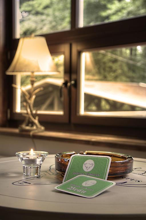 In den sonnigen Monaten werden die Mahlzeiten auf der Terrasse an der Vorderseite des Gasthofs oder im Schatten des Biergartens an der Rückseite serviert.