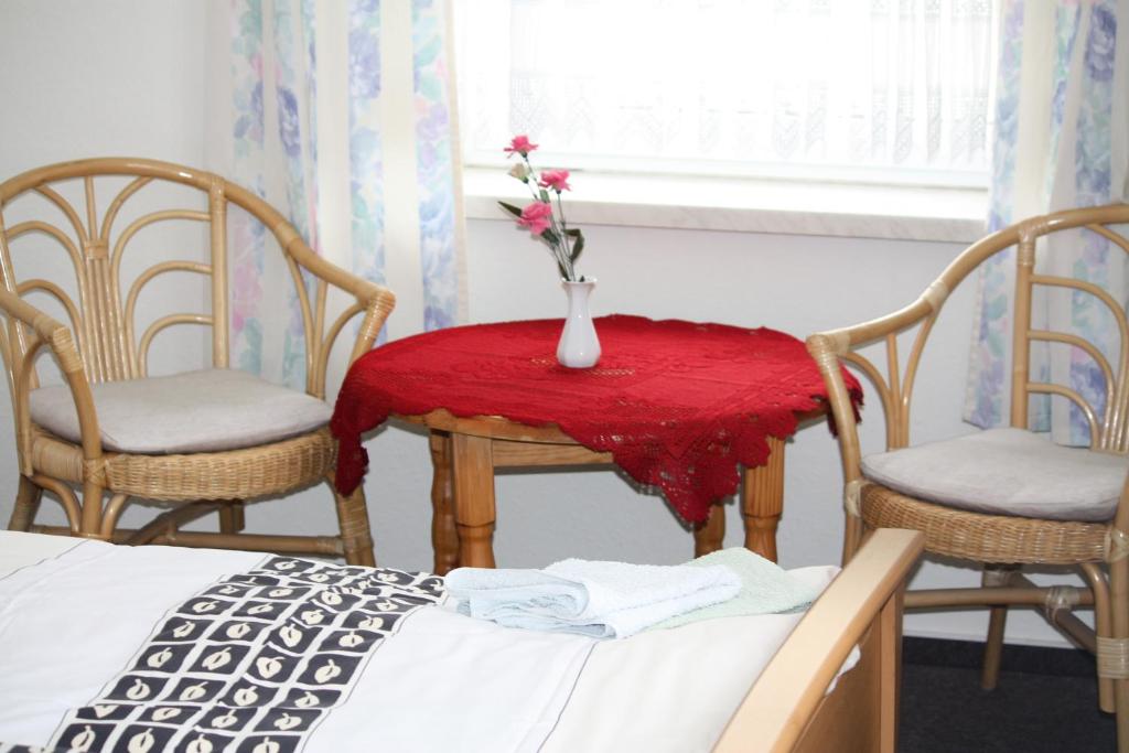 Unsere Gaststätte hat Montags Ruhetag. Jedoch ist die Übernachtung möglich. Bei der Montagsanreise bekommen Sie die Zimmerschlüssel über einen Schlüsseltresor. Wir haben viel Mühe, Zeit und Liebe in unsere kleine Pension gesteckt und sichern Ihnen ein sauberes und mit Herz & Leidenschaft geführtes „Zuhause auf Zeit“. Wir haben keine Luxusbetten, keine riesigen Flatscreens an den Wänden, kein Kaviar auf dem Frühstücksbuffet und auch keine Designermöbel in den Zimmern. Bitte erwarten Sie das nicht bei uns.