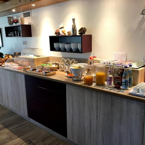 Ein Frühstücksbuffet wird jeden Morgen im rustikalen Restaurant mit Holzbalkendecken gereicht. Der Biergarten serviert typisch fränkische Gerichte.
