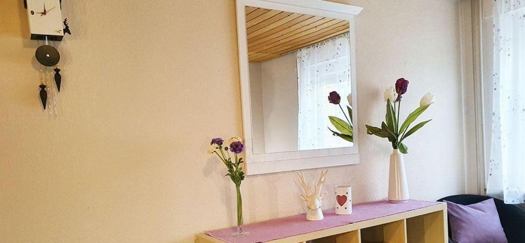 Bitte beachten Sie, dass eine eventuell anfallende Kurabgabe nicht im Gesamtpreis enthalten ist. Diese ist vor Ort zu leisten. Please note that the total price does not include any spa tax. This has to be paid on site. Mit 60 qm Wohnfläche und einer beinahe ebenso großen Terrasse bietet sie Platz für max. 5 Personen. Sie verfügt über zwei Schlafräume, ein modern eingerichtetes Wohnzimmer, eine sep. Küche mit Essecke und ein Badezimmer. +++++++++++++++ Ihre Gesundheit ist uns sehr wichtig. Daher erarbeiten wir derzeit ein umfangreiches Hygienekonzept, das sich an den Empfehlungen des Deutschen Tourismusverbandes orientiert. Für den Checkin haben wir einen Schlüsseltresor installiert, so dass eine kontaktlose An- und Abreise möglich ist. Dennoch sind wir vor und während Ihres Aufenthaltes bei uns sehr gerne jederzeit für Sie da. +++++++++++++++ Die Küche – modern & großzügig ausgestattet Die Küche wurde erst vorkurzem (im Jahr 2016) installiert und ist sehr großzügig ausgestattet. Sie finden dort alles, was Sie für einen erholsamen Aufenthalt in dieser familienfreundlichen Ferienwohnung bei Freiburg benötigen. Die Ausstattung umfasst: Cerankochfeld, Backofen, Kühlschrank mit Gefrierfach, Mikrowelle, Kaffeemaschine, Wasserkocher, Mixer, Pürierstab, ausreichend Geschirr, Töpfe, Küchenutensilien, Gewürze uvm. Das Wohnzimmer – gemütlich relaxen Ein gemütliches Schlafsofa, ein Tisch, 2 Sessel und der 42 Zoll Plasma-Fernseher mit Kabelanschluss sind die ideale Ausstattung für gemütliche Abende in der Ferienwohnung „Feldberg“. So können Sie mit Ihrer Familie entweder einen entspannten Fernsehabend genießen oder auch einen bunten Spieleabend gestalten. Die Schlafzimmer – erholsam & entspannend Das Haupt-Schlafzimmer ist mit einem großen Doppelbett mit zwei getrennten Matratzen und einem geräumigen Kleiderschrank mit ausreichend Staumöglichkeiten ausgestattet. Zudem lädt Sie ein Lesesessel zum entspannten Leseabend ein. Im zweiten Schlafzimmer befinden sich ein Doppelstockbett, ein Kleiderschrank und eine kleine Leseecke. Auf Wunsch und nach vorheriger Anmeldung kann ein Babybett gestellt werden. Diese Ausstattung und Aufteilung der Schlafräume ist ideal für Familien mit Kindern geeignet. Die Terasse – riesig & romantisch Lassen Sie einen erlebnisreichen Tag bei einer guten Flasche Wein, Kerzenschein und dem romantischen Bachrauschen ausklingen. Für Familien mit Kindern bietet die Terrasse ausreichend Platz zum Spielen und Toben. Inklusiv-Leistungen: ☀ Kostenloses W-LAN ☀ großzügig ausgestattete Küche ☀ Kabelfernsehen ☀ Bettwäsche und Handtücher ☀ Parkplatz im geschützten Innenhof ☀ Babybett und Hochstuhl nach Verfügbarkeit ☀ Spiele für Kinder, Kinderteller und Kinderbecher ☀ Informations-Ordner mit Ausflugstipps, Restaurantempfehlungen und Veranstaltungen liegt in der Wohnung bereit ☀ Kostenloser Verleih von Wander- und Fahrradkarten für die Region ☀ Haustiere auf Anfrage möglich In der Ferienwohnung „Feldberg“ ist alles da, was Sie für einen entspannten Aufenthalt in Freiburg brauchen: Handtücher, Bettwäsche, Geschirrlappen, Toilettenpapier, Seife, Gewürze usw. Hygiene ist uns nicht nur in der jetzigen Zeit wichtig. Gründliche Desinfektion ist für uns eine Selbstverständlichkeit. Wir, die Familie Willmann wohnen direkt neben Ihrem Ferienhaus und sind während Ihres gesamten Aufenthalts gerne für Sie da.
