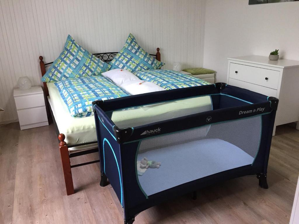 Unsere Ferienwohnung besticht durch ihre ruhige Lage, die doch wieder so zentral ist, dass man von dort aus sehr viele Ausflugsmöglichkeiten hat, bis hin ins Allgäu. Wir bieten Ihnen Gemütlichkeit pur, eine sehr gut ausgestattete Küche, sodass es nicht nötig ist, Ihren eigenen halben Hausstand mitzubringen 😉! Auf der Terrasse lässt es sich bei schönem Wetter angenehm sitzen, mit Blick auf einen ganz privaten Gartenteil, der vom Hauseigentümer nicht genutzt wird. Grillen und chillen heißt das Stichwort. Ist das Wetter mal weniger freundlich, lässt es sich in der Wohnung auch prima aushalten. Bei einem leckeren Heißgetränk, mit Kuscheldecken auf dem Sofa, mitgebrachte oder Bücher aus der eigenen Minibibliothek lesen, oder mit dem eigenen Netflixkonto Filme der Wahl sehen, oder aus dem Kabelangebot auswählen. Vielleicht mag jemand rätseln, malen oder spielen - einfach vom Schrankinhalt unter dem TV-Gerät inspirieren lassen! Bisher gibt es allerdings neben dem Doppelbett im Schlafzimmer nur eine Schaumstoffklappmatratze als weitere Schlafgelegenheit. Babyreisebett (incl. Matratze, aber ohne Bettzeug)) und Hochstühlchen werden auf Anfrage bereitgestellt.