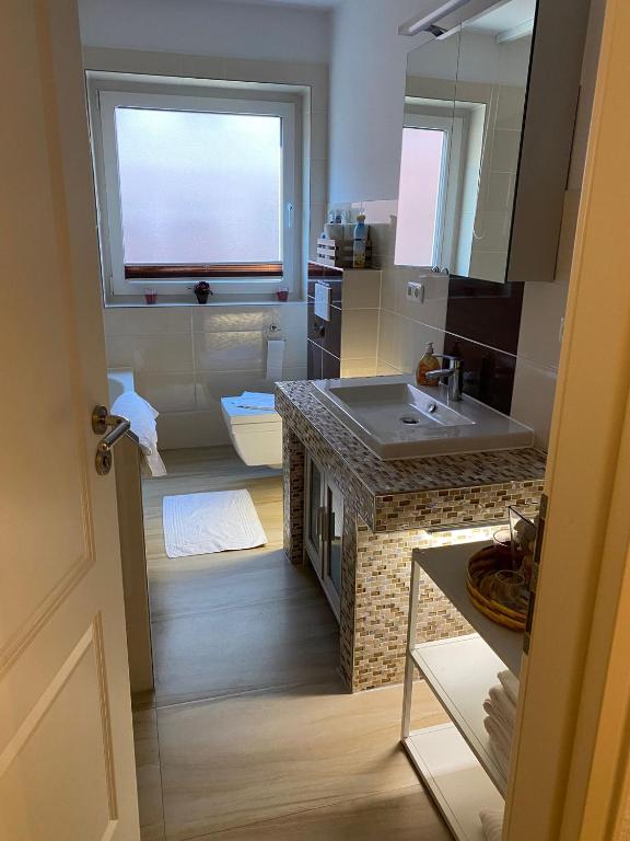 Diese Unterkunft ist 12 Gehminuten vom Strand entfernt. Die Unterkunft Travemünde Fewo am Skandinavienkai Bahnhof erwartet Sie mit einer Terrasse in L