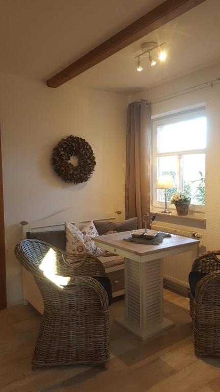 Die Poul's Hof Ferienwohnung in Klettbach bietet ein Restaurant, eine Bar und eine Terrasse. Die Unterkunft befindet sich 35 km von Jena entfernt. Sie