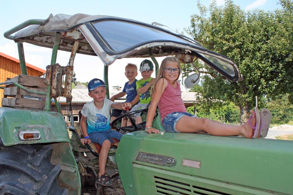 Umgeben von Wiesen und Wäldern liegt unser kinderfreundlicher Bauernhof, fernab von Hektik und Stress. Kinder finden hier ein kleines Paradies beim Versorgen der Tiere, Heuhüpfen, Traktor fahren, Sandburgen bauen und vieles mehr. Langweilig ist es bei uns nie, auch nicht, wenn es einmal regnet - dann geht es rund in unserem Spielzimmer beim Tischtennis, Kickern oder Verkleiden. Unser Urlaubsbauernhof ist ein Paradies für alle kleinen und großen Abenteurer. Durch unsere verkehrsruhige Lage, können Kinder unbeschwert den Bauernhof entdecken und die Natur mit allen Sinnen genießen. Unsere vielen Tiere abschmusen oder tolle Abenteuer in Wald und Flur erleben. Wander- und Radwege führen direkt am Hof vorbei – „Schuhe an“ oder „Rad satteln“ – und schon kann es losgehen. Auch die Angler unter Ihnen können gleich vor der Türe, an unseren eigenen Teichen dem geliebten Hobby nachgehen. Wir sind ein zertifizierter Oberpfälzer Radl-Welt-Gastgeber.