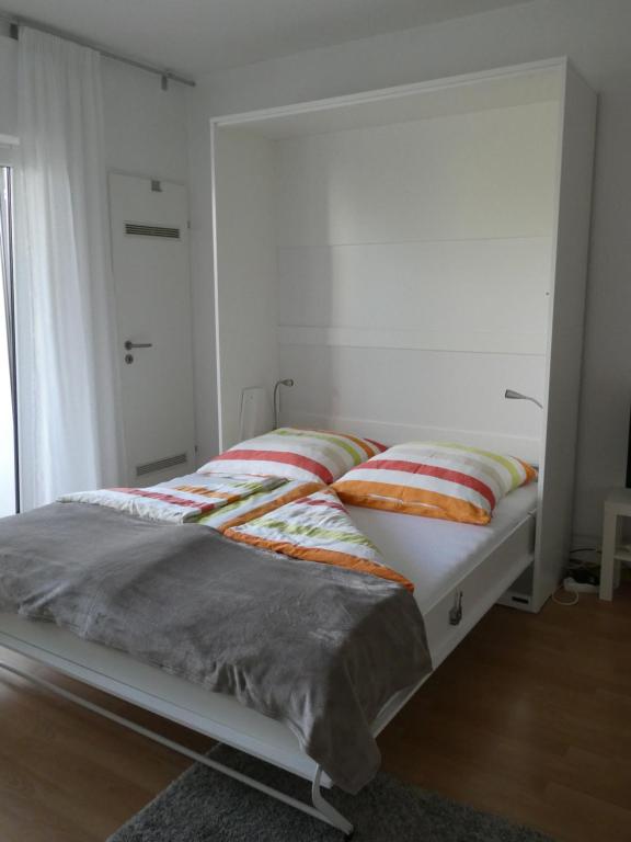 Ausstattung: Wohn-/ Schlafzimmer: Sofa mit Schlaffunktion, Schrankbett 1,60 x 2,00 m, TV, Radio, Spiele, Bücher, ... Küche: Backofen, Cerankochfeld, Kühlschrank mit Gefrierfach, Mikrowelle, Kaffeemaschine, Wasserkocher, Toaster, Geschirr .... Bad: Dusche, Föhn, Badetücher, ... Balkon Hausregeln: Nichtraucherwohnung; Haustiere nicht erlaubt; Handtücher und Bettwäsche werden kostenlos zur Verfügung gestellt; Kostenlos stehen 2 Fahrräder zur Verfügung; Kinderbett und Kinderhochstuhl können auf Anfrage kostenlos gestellt werden; Anreise nach Absprache zu jeder Zeit möglich!