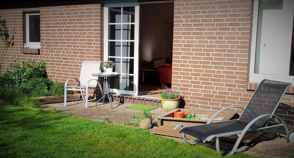 'Grooten Wiebkings' Ferienwohnung Exklusive, 70 qm große Ferienwohnung mit direktem Zugang in unseren traumhaften Spiel- Nasch- Erholungs- und Kräutergarten. Ruhig gelegen am Ortsrand von Schneeren. Großzügige offene Bauweise mit gemütlichem Wohnbereich und Kaminofen. Integrierte, komfortabel eingerichtete Küche mit Kochinsel und großzügigem Essplatz. Abgetrennter Schlafbereich mit Doppelbett (1,40 x 2,00 m). Große Fenster mit Blick in den Garten und auf den Teich. Separates Schlafzimmer mit Doppelbett (1,40 x 2,00 m) und begehbarem Kleiderschrank.Geräumiges Badezimmer mit ebener Dusche. Insektenschutz. Für Ihre Kinder stellen wir gern ein Reisebett, Hochstuhl, Wickelunterlage, Klo-Sitz, Tritthocker, Babybadewanne, Sportkarre und Spielzeug kostenlos zur Verfügung. Im Garten gibt es einen Sandkasten direkt vor der Tür und diverse Spielgeräte. Hunde sind gerne nach Absprache willkommen, soweit sie verträglich sind, da wir selbst zwei Hunde haben. Hundekorb, Näpfe und Hundetücher stellen wir gern zur Verfügung.