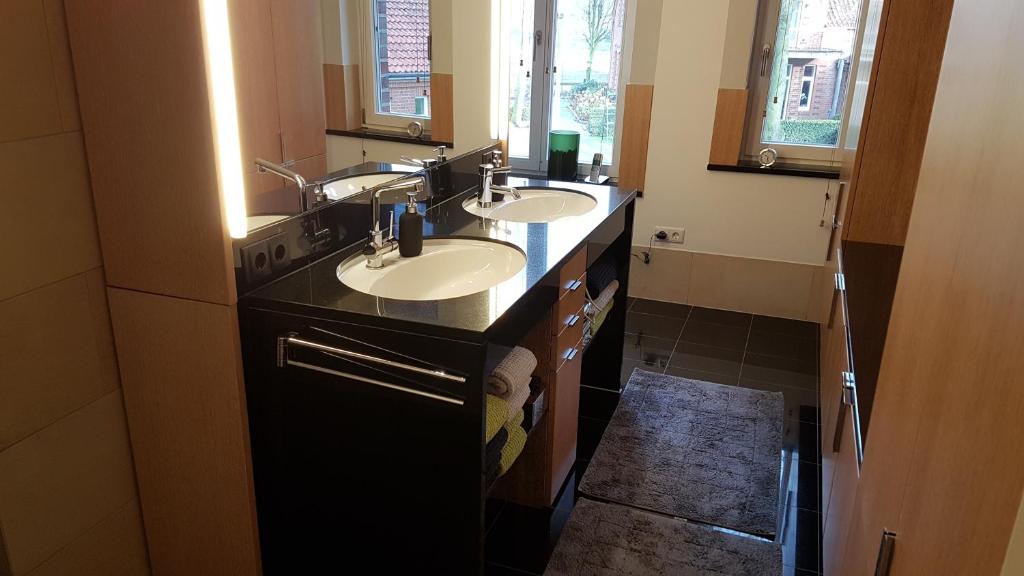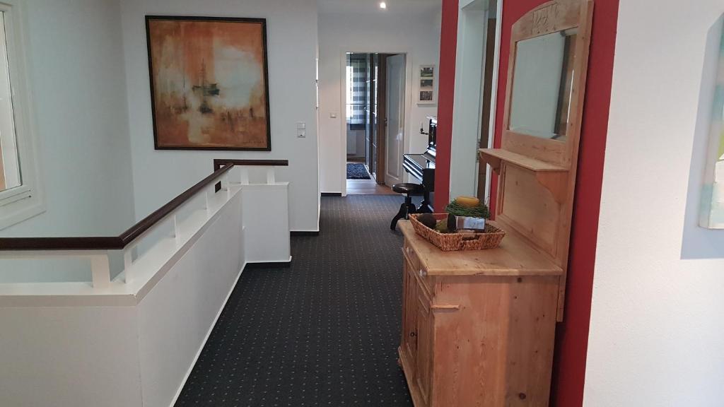 Ausstattung: Treppe und Aufzug / Lift, 2 hochwertige Badezimmer, mit Dusche und z.T. mit Badewanne, Fußbodenheizung, 3 Schlafzimmer / 6 Betten, HWR mit Waschmaschine und Trockner, Bügelbrett, Bettwäsche, Handtücher, Fön, voll ausgestattete Einbauküche (Backofen, 4-Platten-Ceranfeld, Mikrowelle, Spülmaschine, Kaffeemaschine, Eierkocher, Wasserkocher etc.), großes, hochwertig eingerichtetes Wohnzimmer mit Esstisch, Sitzecke, Schreibtisch, internetfähiger Flachbildschirm, großer überdachter Balkon (ca. 20 qm, neuer Gas-Grill, Gartenmöbel für 6 Personen), Carport, kostenloses W-LAN