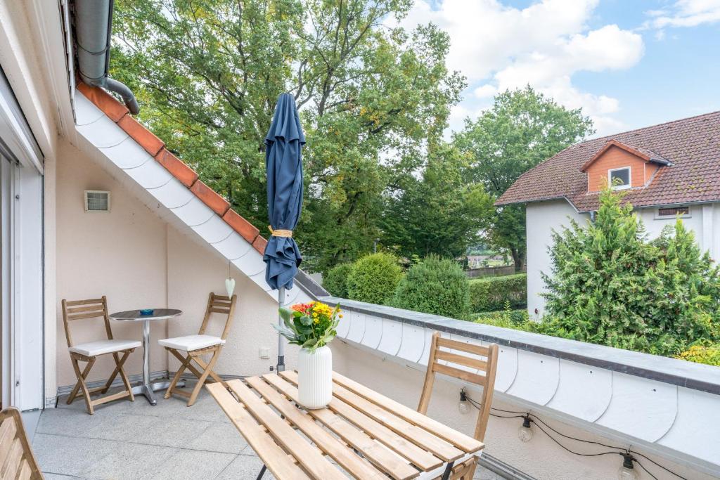 • Hat die Unterkunft Große, moderne Wohnung im Grünen nahe Frankfurt einen Balkon?