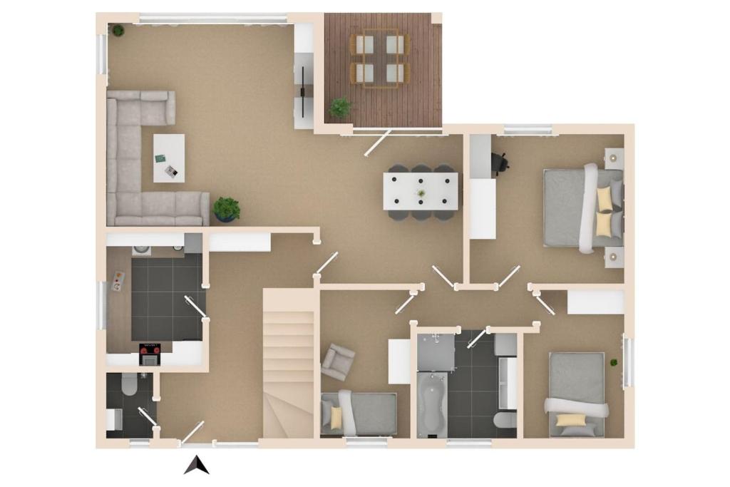 Das Ferienhaus bietet eine Sonnenterrasse. Das Große (ca.230m2) freistehendes Einfamilienhaus verfügt über einen Garten, einen Grill und einen Kinderspielplatz.