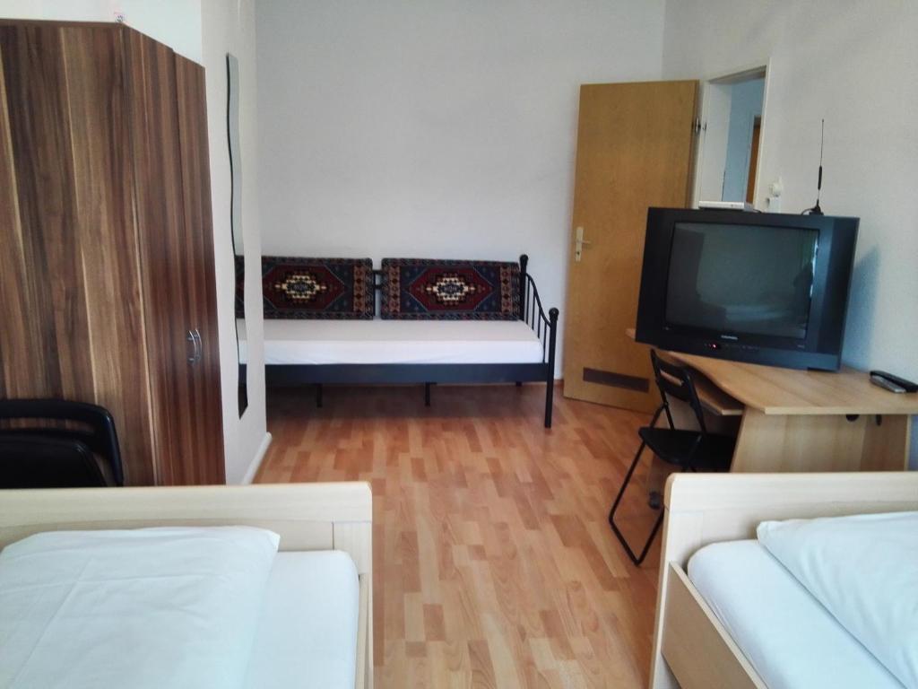 Das Zweibettzimmer ist ausgestattet mit 2 Einzelbetten, Schreibtisch, kleinen Tisch , 2 x Sessel, 1 x Flachbild TV und einem Kleiderschrank. Das Dreibettzimmer ist mit 3 Einzelbetten ausgestattet (2 Einzelbetten können zu einem Doppelbett zusammen geschoben werden). 1 x Schreibtisch, 1 x Kleiderschrank und einem Fernseher / TV. 1x Badezimmer mit einer Badewanne, 1 x Toilette und 1 x Wohnküche mit einer Küchenzeile, Esstisch mit 5 Stühlen. Geschirr, Töpfe, Pfannen, Besteck, Wasserkocher, Kaffeemaschine vorhanden. Internetnutzung durch Wlan kostenlos verfügbar. Sehr zentral gelegene Wohnung mit öffentlichen Anbindungen (Straßenbahn um die Ecke). Mit Auto Messe in 10 Minuten erreichbar. Hauptbahnhof in 15 Minuten mit der Straßenbahn oder zu Fuß. Supermärkte, Restaurants, Imbisse zu Fuß in 5-10 Minuten erreichbar.