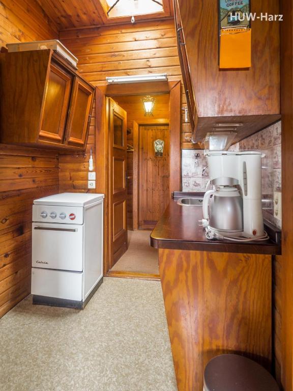 Schönes Ferienhaus im Blockhausstil im Südharz. Die Zimmer sind naturbelassen und holzgetäfelt, die Einrichtung entspricht dem freundlichen Chalet-Stil des Blockhauses. Wohnzimmer mit Kamin, Ess- und Leseecke, kleine voll ausgestattete Küche mit Küchenzeile, Gasherd mit Backofen, Mikrowelle, Kühlschrank, Wasserkocher und Kaffeemaschine. Es gibt ein kleines Schlafzimmer mit Einzelbett, Kleiderschrank und Waschbecken, ein Schlafzimmer mit Doppelbett und einem weiteren Einzelbett mit Kleiderschrank sowie ein Badezimmer mit Dusche und WC. Ein schöner Garten mit Gartenmöbeln steht für Sie bereit. Auf der großen überdachten Terrasse mit Blick auf die Burgruine Scharzfels steht ein Esstisch mit Sitzbank. Außerdem gibt es einen großen, überdachten Balkon mit Außenkamin für schöne Abende am offenen Kamin. Vor dem Haus befinden sich zwei Parkplätze für Autos. Besonderheit: Innen- und Außenkamin Internet-Zugang Kostenloser WLAN-Flatscreen-TV