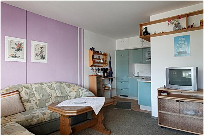 Eine schöne Einzimmerwohnung in einem Apartmenthaus in Döse mit seitlichen Meerblick wartet auf Ihre Buchung. Die Wohnung ist für 2 Erwachsene ausgelegt, Kinder könnten auf dem Sofa übernachten. Das Apartment ist mit einer Küchenzeile (2 Kochplatten, Spüle, Kühlschrank, Mini-Heißluft-Ofen, Geschirr) gemütlichem Sofa, Sitzgruppe und verglasten Balkon ausgestattet. Im Apartmenthaus können Sie das 2017 neu eröffneten Schwimmbad, Fitnessbereich und Sauna kostenfrei mitnutzen. Gegen Münzzahlung steht Ihnen eine Waschmaschine und eine Trockner zur Verfügung.