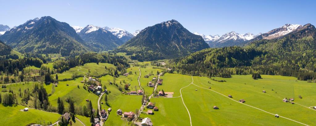 Unser Haus liegt ruhig und beschaulich an der "grünen Gasse", am sonnigen, südlichen Ortsrand von Oberstdorf. Der Landhausstil passt ausgezeichnet zur Umgebung und mit Sauna und kleinem Ruheraum, der großen Spiel- und Liegewiese.