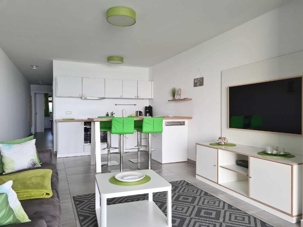 Das Apartment mit Terrasse und Meerblick verfügt über 1 Schlafzimmer, ein Wohnzimmer, einen Flachbild-TV, eine ausgestattete Küche mit einem Geschirrspüler und einem Kühlschrank sowie 1 Bad mit einer Dusche. Handtücher und Bettwäsche erhalten Sie gegen Aufpreis.