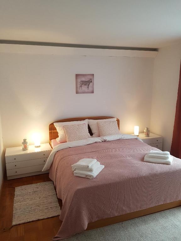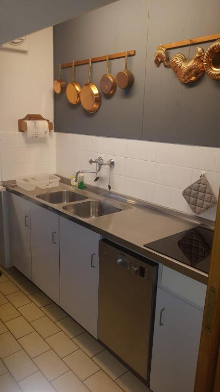Die Privatunterkunft verfügt über 2 Schlafzimmer, 1 Bad, Bettwäsche, Handtücher, einen Flachbild-Kabel-TV, einen Essbereich, eine voll ausgestattete Küche und eine Terrasse mit Gartenblick.