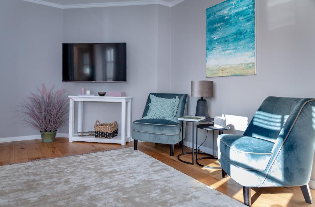 Das Ferienhaus befindet sich im Erdgeschoss und verfügt über 2 Schlafzimmer, einen Flachbild-TV und eine voll ausgestattete Küche mit einem Geschirrspüler, einem Kühlschrank, einer Waschmaschine, einem Backofen und einem Kochfeld. Handtücher und Bettwäsche werden gestellt.
