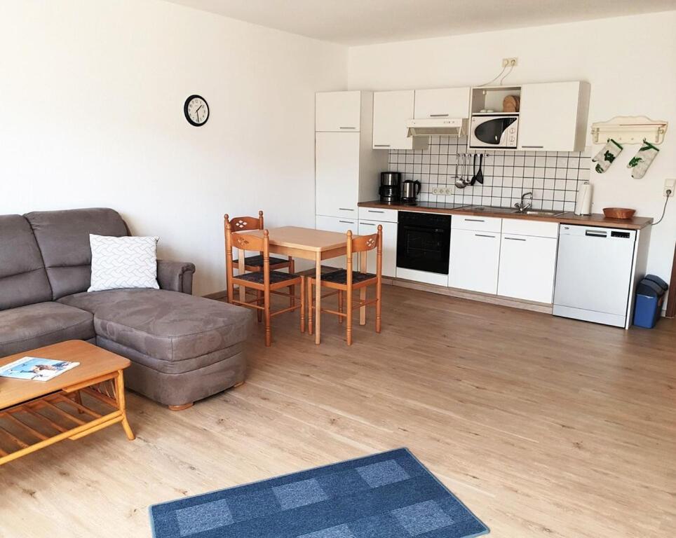 Das 2-Raum-Appartement im Erdgeschoss verfügt über ein separates Schlafzimmer mit Doppelbett, Wohnraum (Schlafsofa, TV) mit Küchenzeile (Backofen, Spülmaschine) und Essecke sowie separates Badezimmer mit Dusche/WC. Vom Wohnraum haben Sie Zugang zur Terrasse. Nichtraucherwohnung!