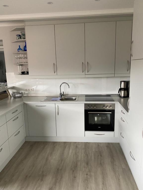 Das Haus Elfi liegt sehr zentral ( ca 4 Minuten zum Strand und Zentrum ) aber in einer absolut ruhigen Sackgasse, und wir renovieren und modernisieren die Wohnungen A,B,C bis März 2018 komplett neu. Die Küche, die Wohnzimmermöbel ,Schränke und Schlafzimmer erhalten ein nordisches, helles Ambiente und mehr Gemütlichkeit. Boxspringbetten, eine moderne Küche mit Geschirrspüler etc... und eine Essecke sorgen für eine Urlaubs- Wohlfühloase. Lassen sie sich vom neuen "Haus Elfi" überraschen ! Jedes Appartement hat eine eigene Terrasse mit Liegen, Möbel und Strandkorb ! Wir sind gespannt, wie Ihnen das neue Ambiente gefällt ! Unser top Luxus gestaltetes Appartement D im ersten Stock wird sie begeistern ! 7 Fernseher , 2 Bäder, ein großer, gemütlicher Esstisch mit offener Küche, und kompletter Küchenausstattung ( Toaster, Waffeleisen, Bräter, Senseo und Eierkocher etc... ) 2 moderne Bäder mit raindancer, anspruchsvolles, moderne Mobiliar sowie geschmackvollen Dekorationen , einem Wintergarten und einem Balkon mit Strandkorb - es gibt eigentlich nichts, was in diesem Appartement fehlt um einen tollen Ostaeeurlaub in einer größeren Gruppe ( bis 9 Personen möglich ) zu verbringen.