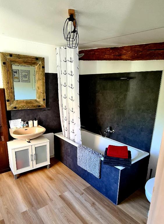 Ein Kinderspielplatz ist an der Unterkunft vorhanden und in unmittelbarer Nähe des Ferienhauses können Sie wandern und Rad fahren.
