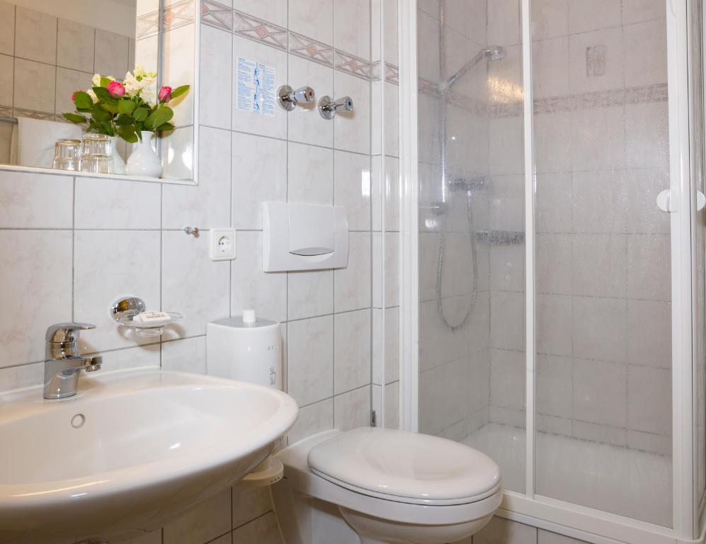 Jedes der modern eingerichteten Zimmer in der Pension verfügt über einen Flachbild-Sat-TV und ein eigenes Bad. Einige Zimmer bieten Gartenblick.