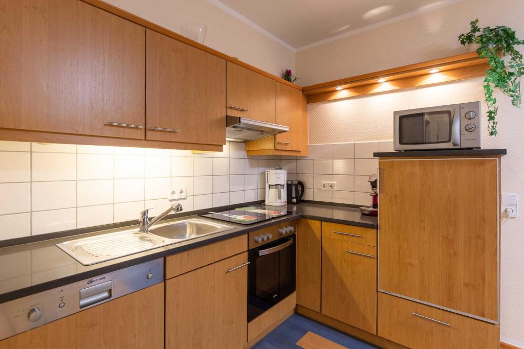 Das Apartment verfügt über 2 Schlafzimmer, Sat-TV und eine voll ausgestattete Küche mit einem Geschirrspüler, einer Mikrowelle, einer Waschmaschine, einem Kühlschrank und einem Backofen.