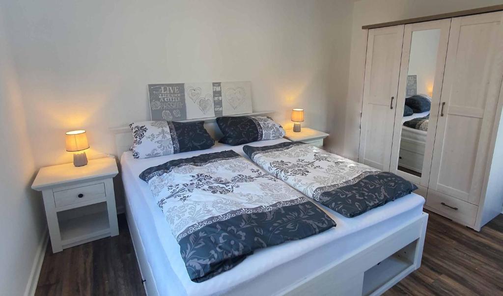 Unsere ruhig gelegene Ferienwohnung mit 50m² Wohnfläche bietet Platz für 1-3 Personen. Der gemütliche Wohnraum mit ausziehbarer Schlafcouch und SAT-TV lädt zum Verweilen ein. Die komplett ausgestattete Küchenzeile mit Geschirrspüler, Kühlschrank inkl. Gefrierfach, Herd, Backofen, Wasserkocher, Toaster und Kaffee-Maschine lässt keine Wünsche offen. Die Wohnung verfügt über ein Schlafzimmer mit einem Doppelbett sowie einem gemütlichen Sessel, der auch als Schlafplatz ausgezogen werden kann. Das geräumige Badezimmer mit Dusche, WC und Föhn rundet das Gesamtbild ab. Die Bettwäsche und Handtücher stehen kostenfrei zur Verfügung. Vor allem im Sommer können Sie entspannte Abende im Garten verbringen. Auch die Terrasse bietet Platz für entspannte Stunden. Haustiere sind erlaubt in der Wohnung. Das WLAN und den Parkplatz vor dem Haus können Sie kostenfrei nutzen.