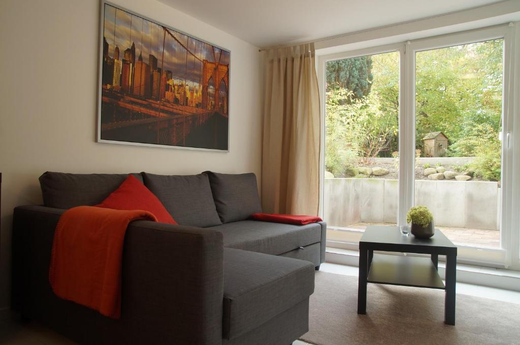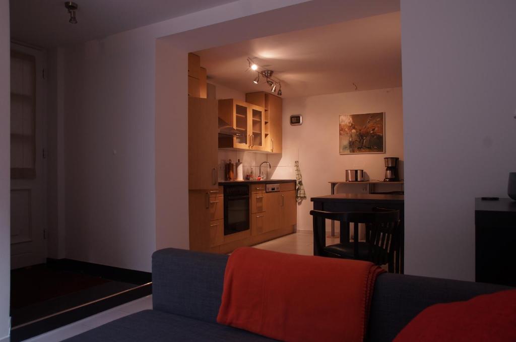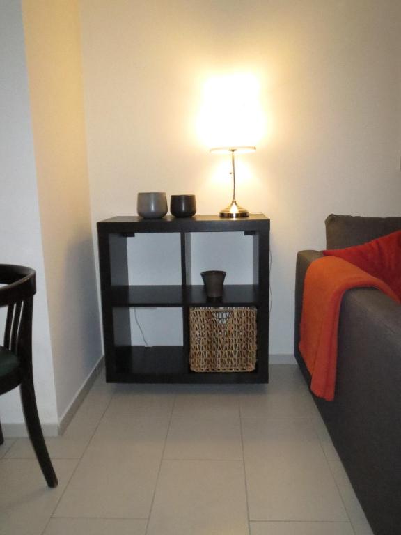 Dieses helle Apartment ist stilvoll mit Fliesenböden und einem modernen Mobiliar eingerichtet. Die Ausstattung umfasst eine Sitzecke, einen Flachbild-Sat-TV und Wäschemöglichkeiten.