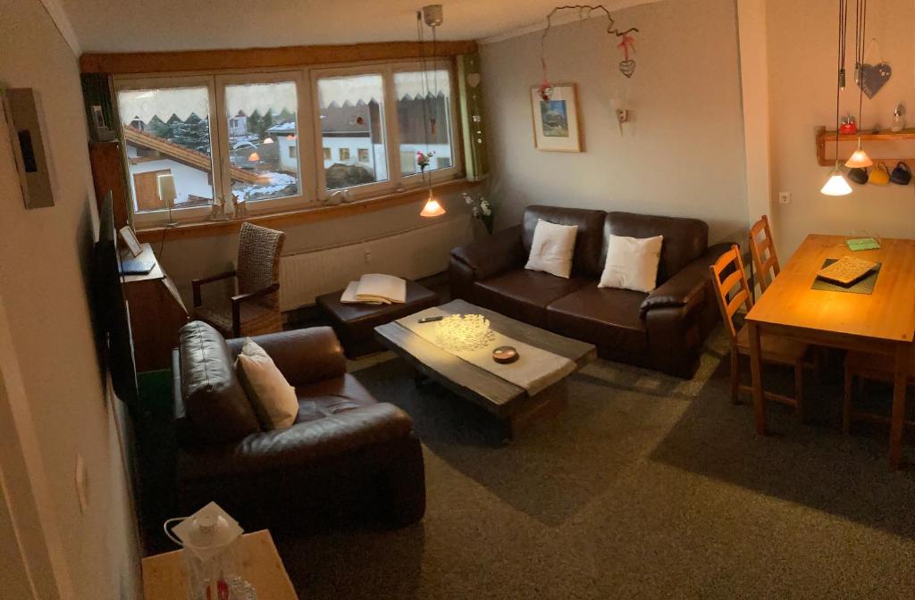 Die schöne Nichtraucherwohnung wurde 2019 renoviert. Die Wohnung hat die Größe von ca. 70m² und ist für 1-4 Personen (plus eventuell ein Kleinkind) geeignet. Das Süd-/West-Panoramafenster im Wohnzimmer bietet einen herrlichen Blick auf die teilweise schneebedeckten Berge und Täler rund um Rettenberg. Das helle Duschbad ist geräumig und modern. Das Hauptschlafzimmer ist mit einem großen, bequemen Doppelbett (200mx180m), einem Kleiderschrank und Nachttischen ausgestattet. Das 2. Schlafzimmer bietet 2 Kindern oder Jugendlichen einen gemütlichen Rückzugsort mit 2 Einzelbetten und einem Wäscheschrank. Die neue Küchenzeile mit allem nötigen Zubehör ist in das großzügige Wohnzimmer integriert. Darüber hinaus gibt es in der Küche eine Mikrowelle, eine Kaffeemaschine, einen Toaster und einen Wasserkocher. Das bequeme Ledersofa im Wohnbereich bietet die Möglichkeit zum Entspannen. Eine Ess-Sitzgruppe, ein Sekretär und ein Flat-TV runden das gemütliche Ambiente ab. Es gibt keine Waschmaschine für Gäste. 1 Parkplatz steht unseren Gästen kostenlos zur Verfügung.
