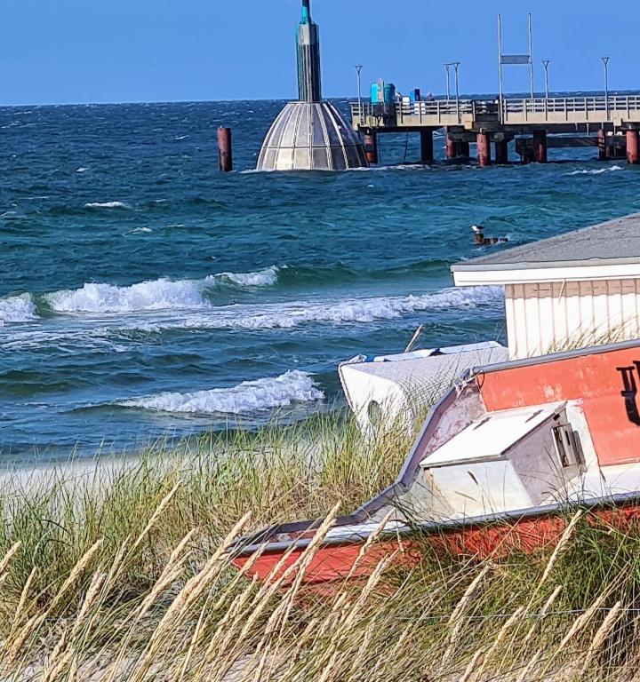 Die in Zingst in der Region Mecklenburg-Vorpommern gelegene Unterkunft Haus Nadine bietet kostenloses WLAN, einen Kinderspielplatz, einen Garten und kostenlose Privatparkplätze. Die Sehenswürdigkeit Strand in Zingst ist in 300 m Entfernung zu erreichen. Die Unterkunft Haus Nadine bietet ihren Gästen eine Terrasse, Gartenblick, einen Sitzbereich, einen Satelliten Flachbild-TV, eine voll ausgestattete Küchenzeile mit einem Kühlschrank und einer Mikrowelle sowie ein eigenes Badezimmer mit einer Dusche und einem Haartrockner. Es gibt eine Herdplatte und einen Toaster sowie auch eine Kaffeemaschine und einen Wasserkocher. In der Nähe können Sie Wandern. Die Sehenswürdigkeit FKK-Strand Zingst liegt 1,6 km von der Unterkunft Haus Nadine entfernt, während die Sehenswürdigkeit Hauptbahnhof Stralsund 45 km entfernt ist. Der nächstgelegene Flughafen ist der Flughafen Rostock-Laage, 84 km von der Unterkunft Haus Nadine entfernt.