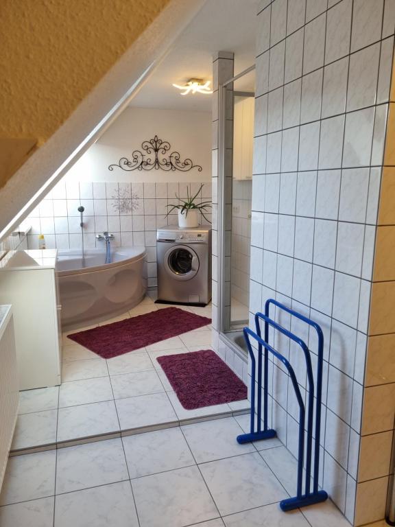 Das Ferienhaus Viola mit Wallbox erwartet Sie mit einer Whirlpool-Badewanne in Schneverdingen. Diese Unterkunft bietet Zugang zu einer Terrasse, koste