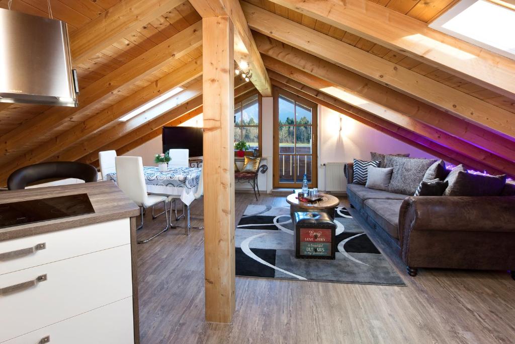 Direkt am Landschaftsschutzgebiet "Grüngürtel Lech" liegt das Ferienhaus mit unverbautem Schloss- und Bergblick. Direkt vor dem Haus liegt die Lechuferpromenade und im Winter die Langlaufloipe Weidach, in unmittelbarer Nähe befindet sich der Bootshafen des Forggensees und das historische Stadtzentrum von Füssen.