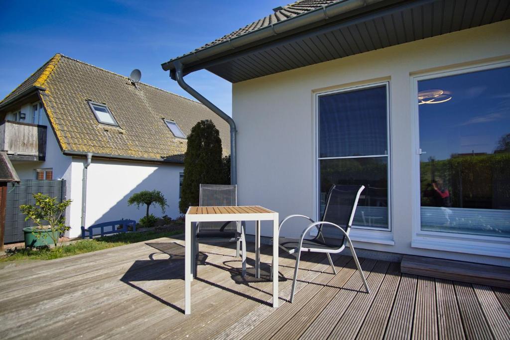Mit kostenfreiem WLAN und Seeblick. Die Ferienwohnung Nr 05 LEON mit Terrasse ist eine Unterkunft in Thiessow, nur 150 m vom Strand Grosser und 400 m